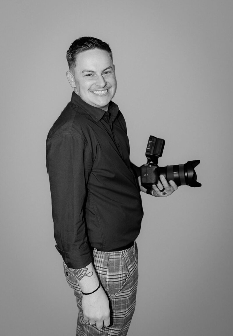 If you’ve ever wondered what a man looks like when he’s spent 14 hours colour-grading the same clip, it’s Sam: pale, twitchy, and muttering at the computer. But thanks to his unhealthy addiction to lactose-free lattes, he’s the sole reason your wedding film looks like it belongs on Netflix.