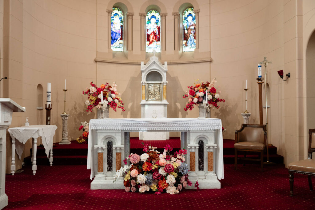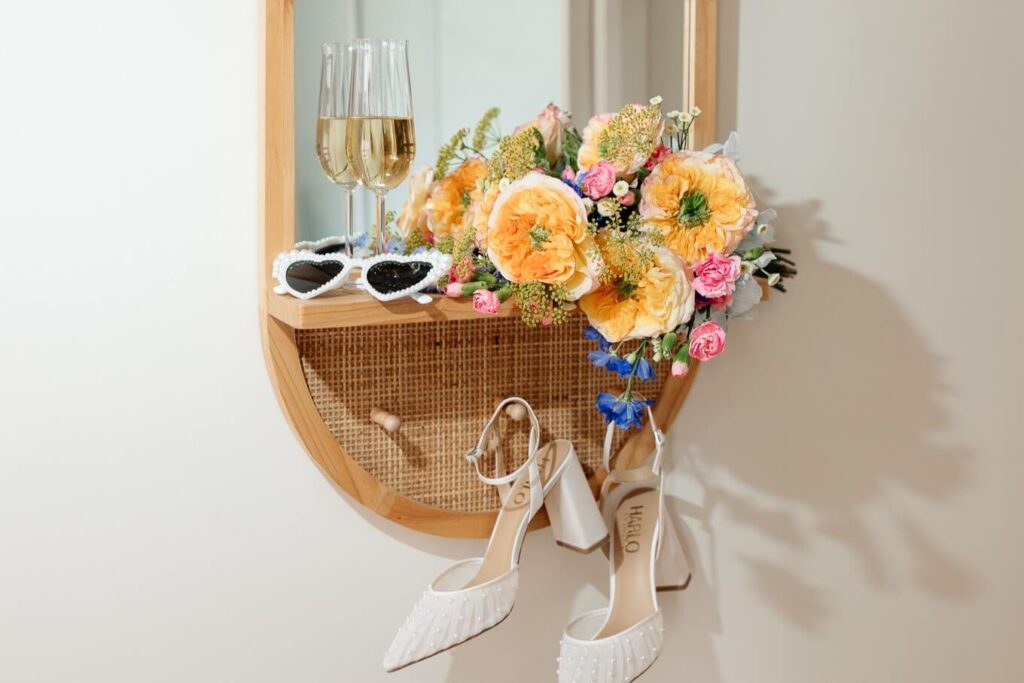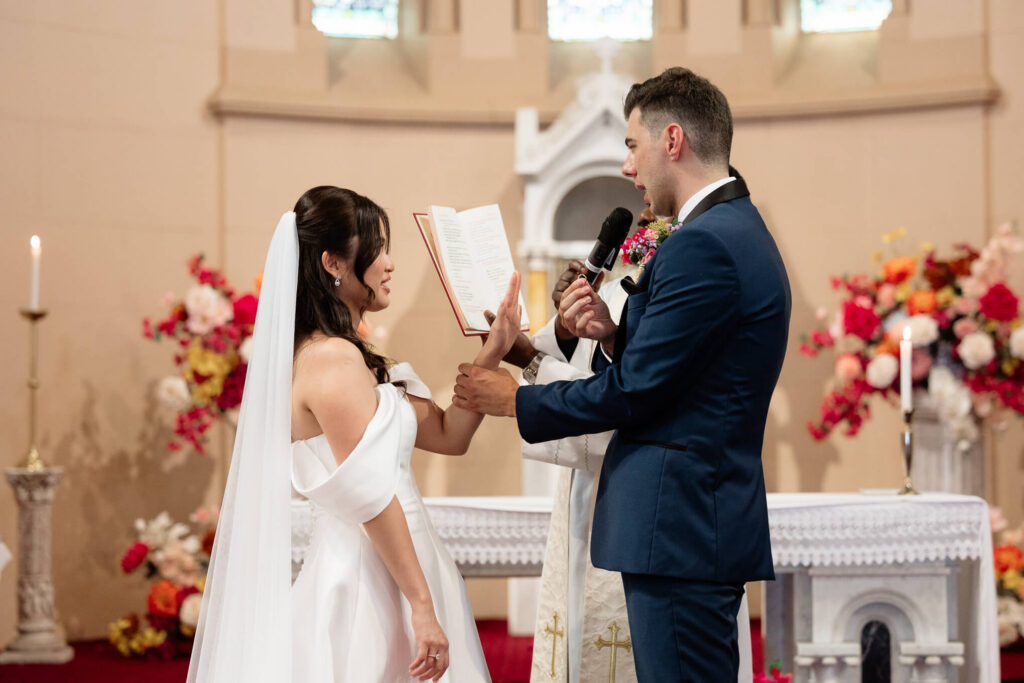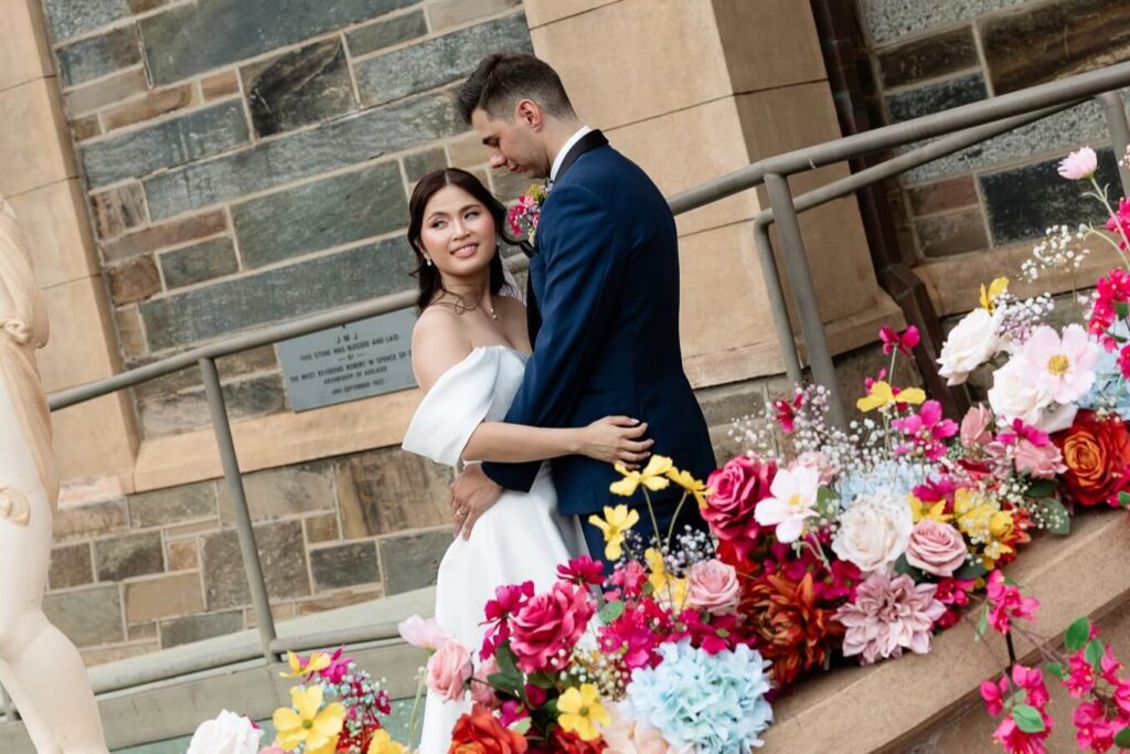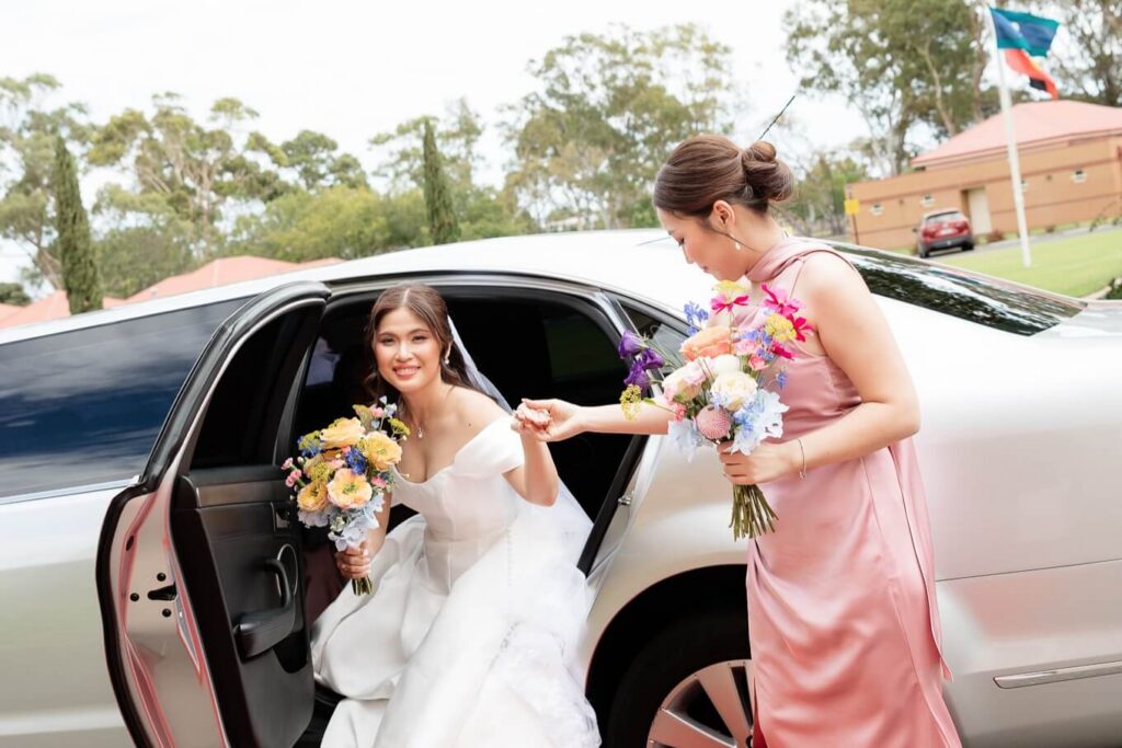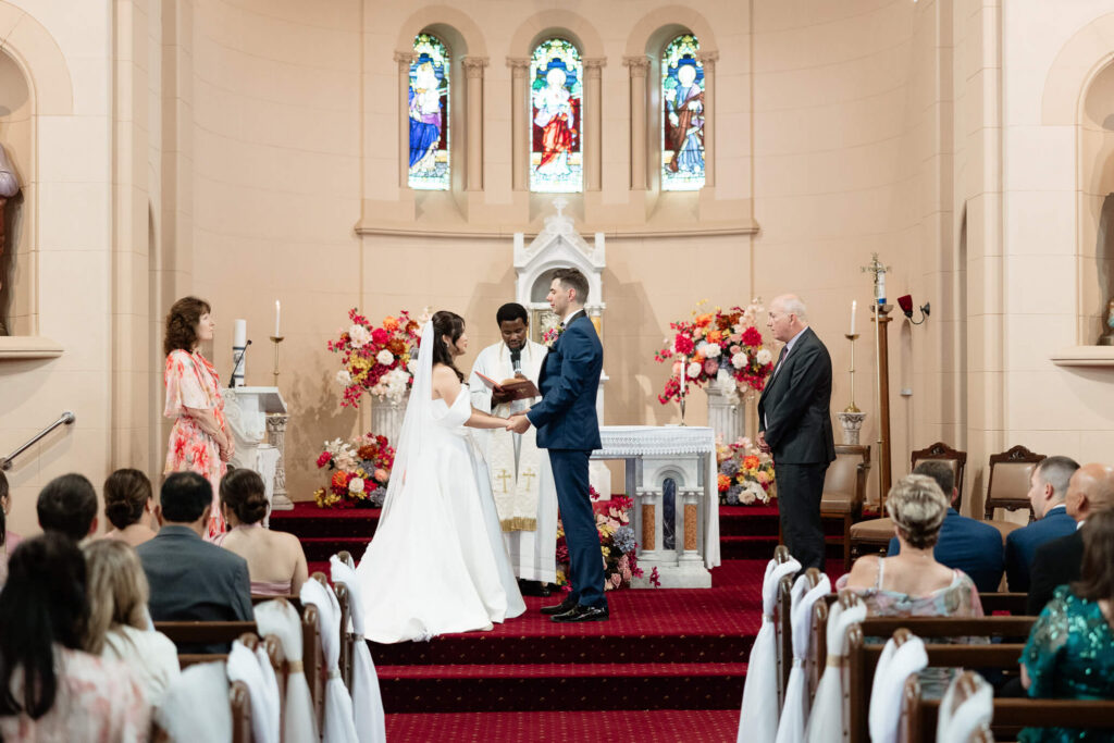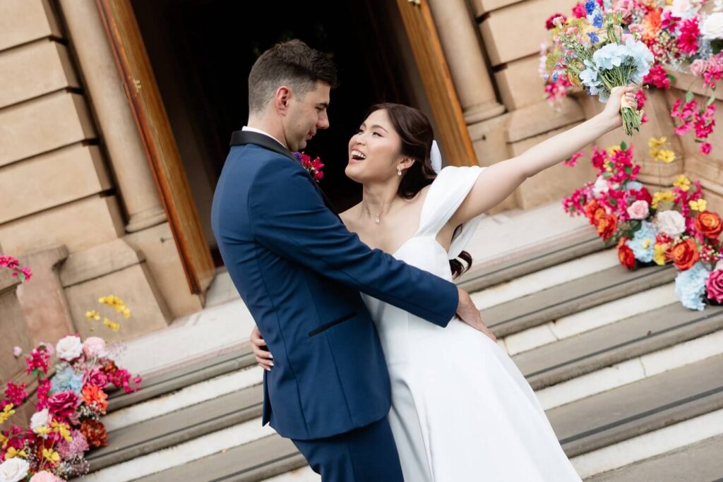 Bee and Jared celebrated their wedding with a day full of joyful and heartfelt moments, starting at Sacred Heart College Chapel. The morning included a champagne pop with the girls during prep and a sweet first look outside the chapel before the ceremony. In a special touch, Bee and Jared walked down the aisle together, surrounded by family and friends.