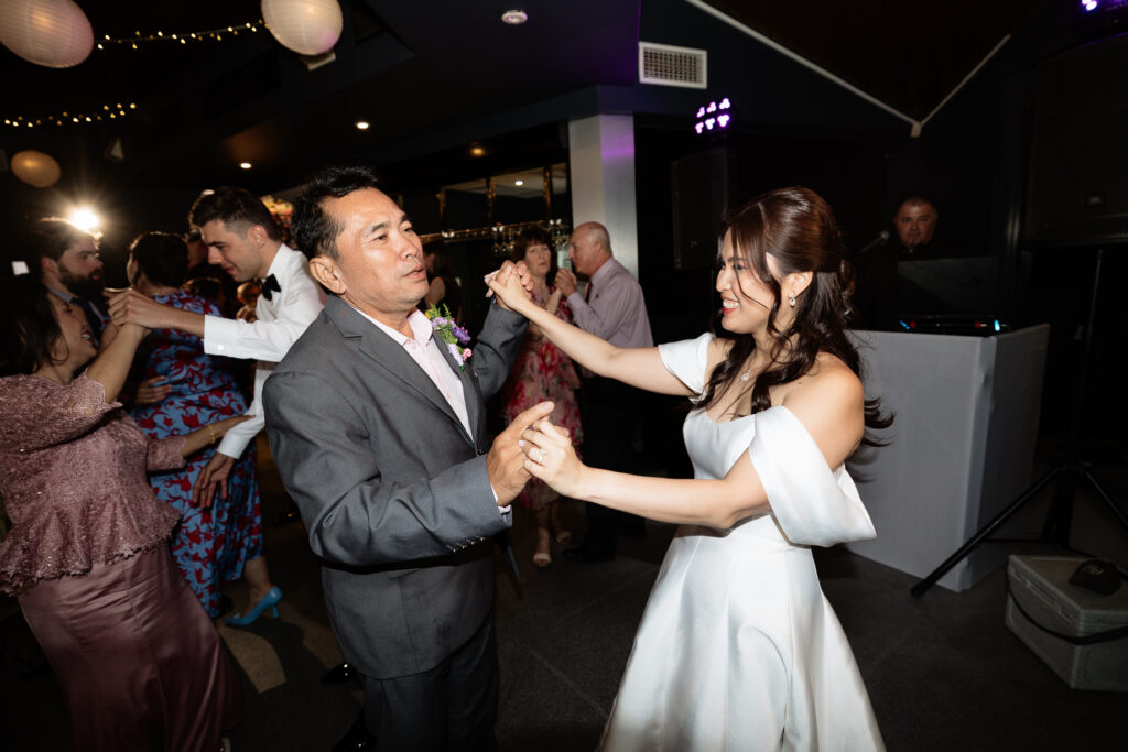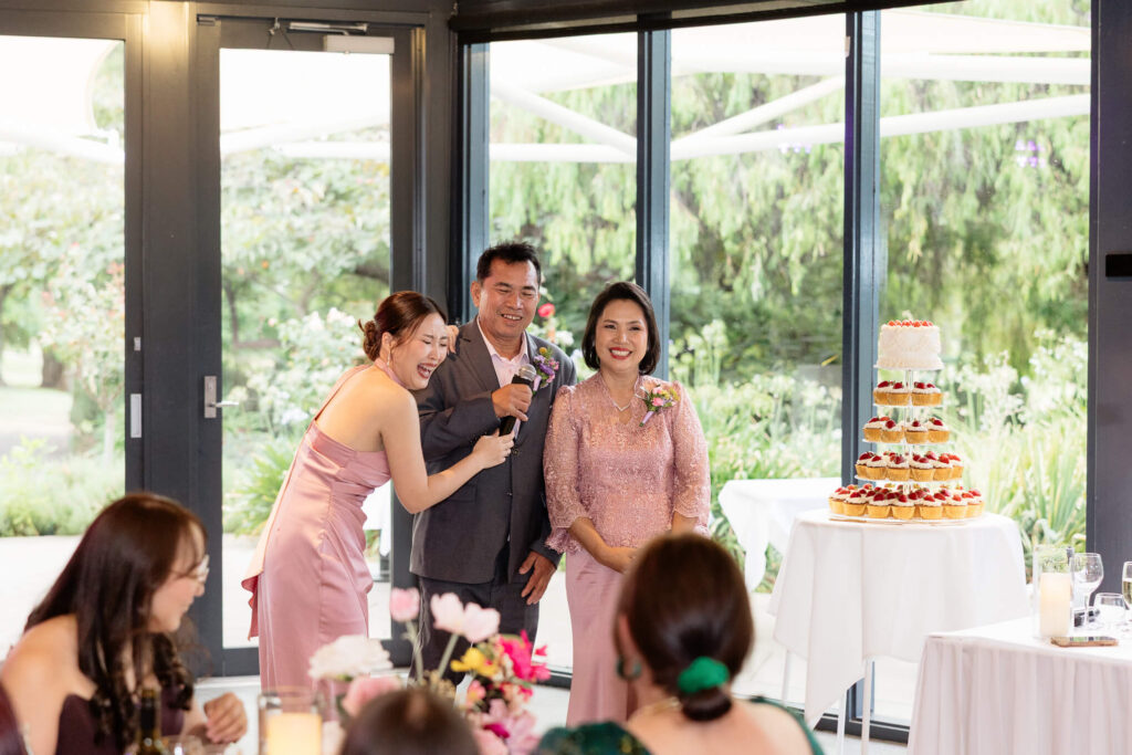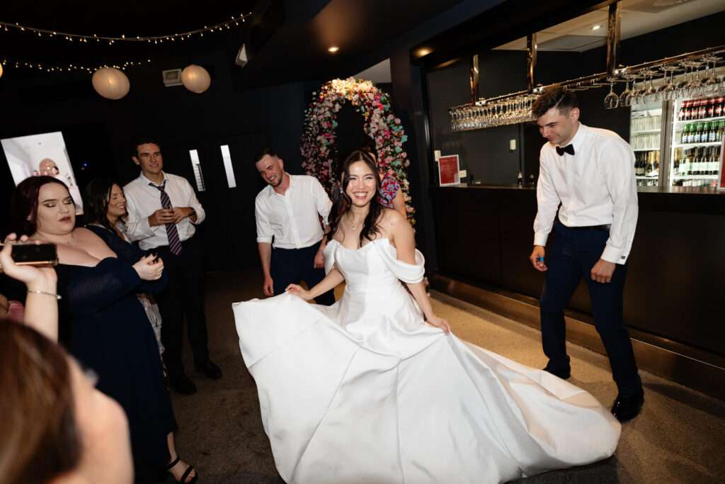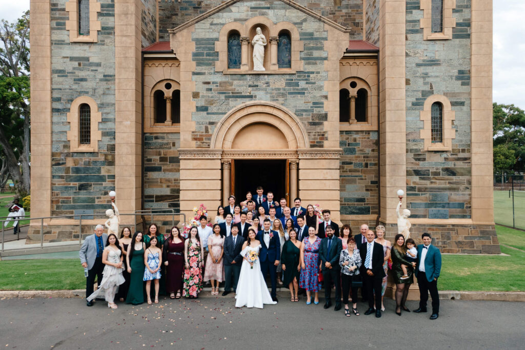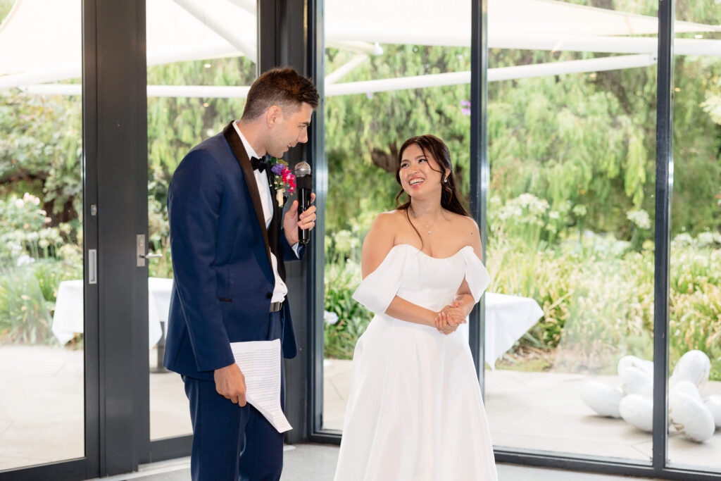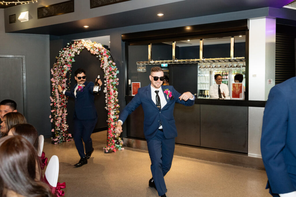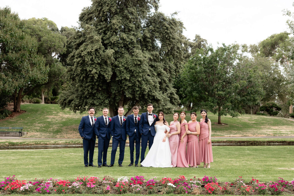 After the ceremony, the couple and their wedding party took photos at the parklands just outside the Adelaide Pavilion. The reception featured heartfelt speeches, their first dances, and a lively dancefloor where guests joined in the celebration.