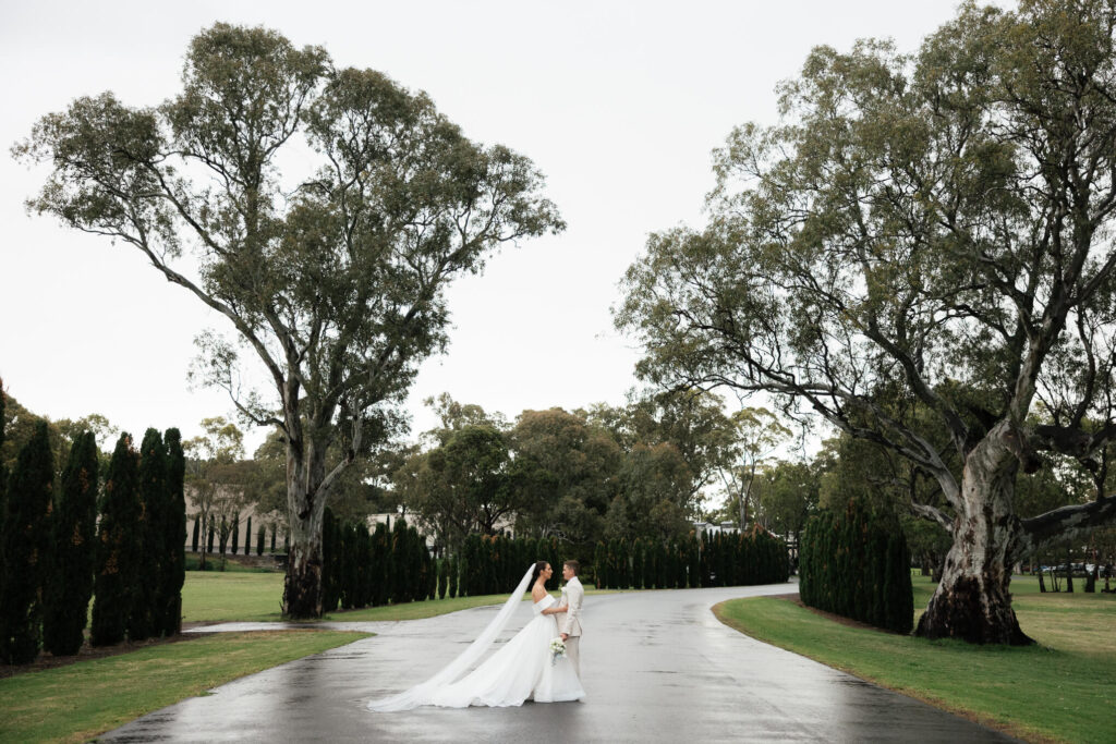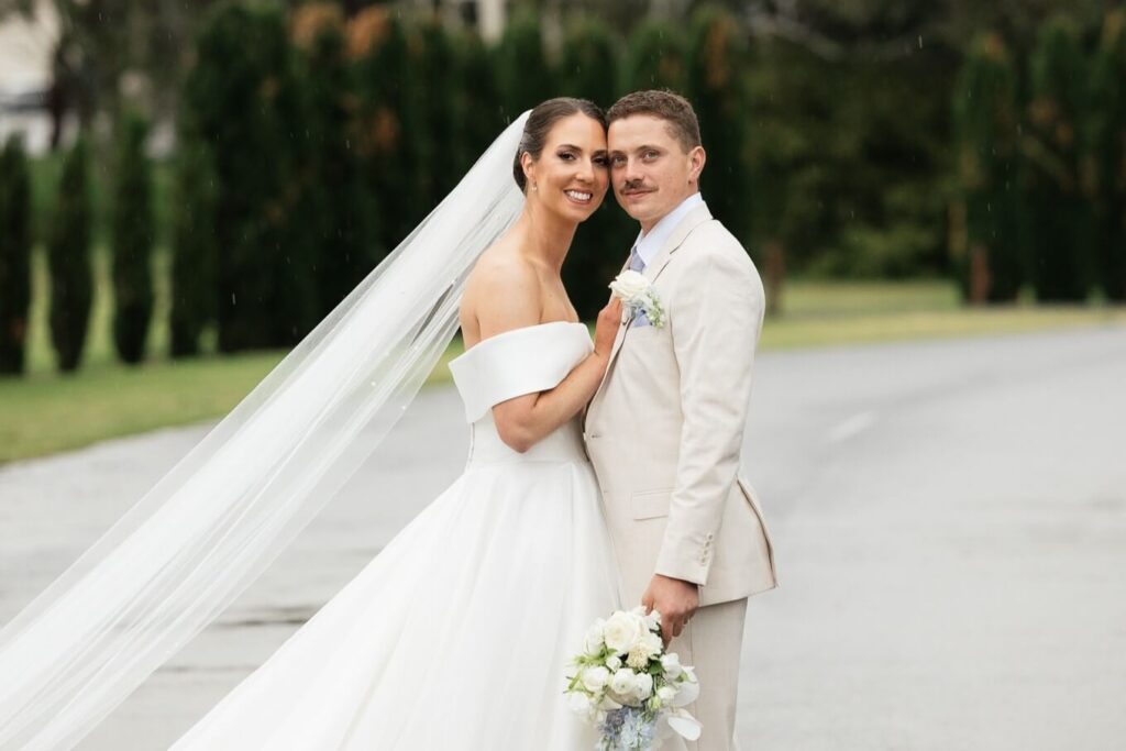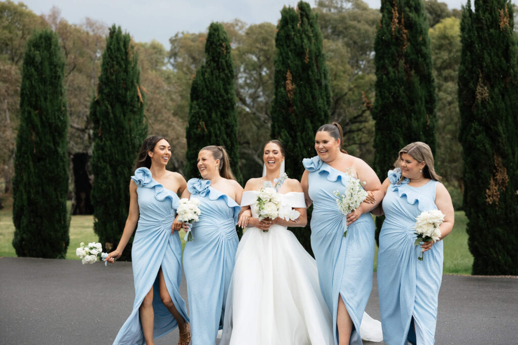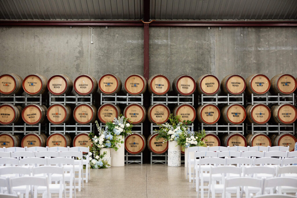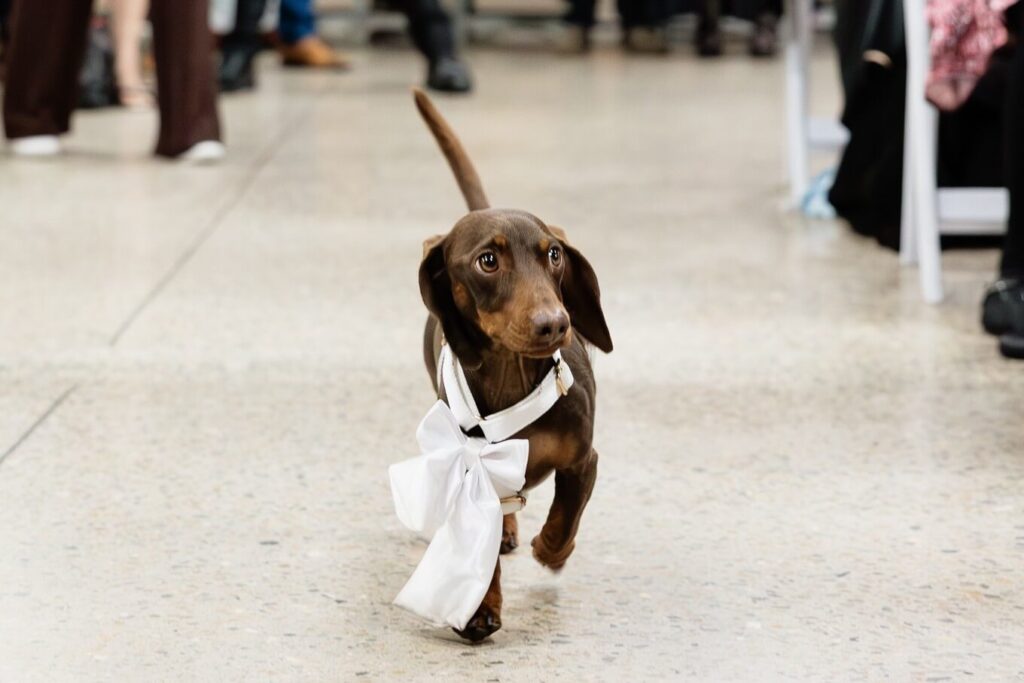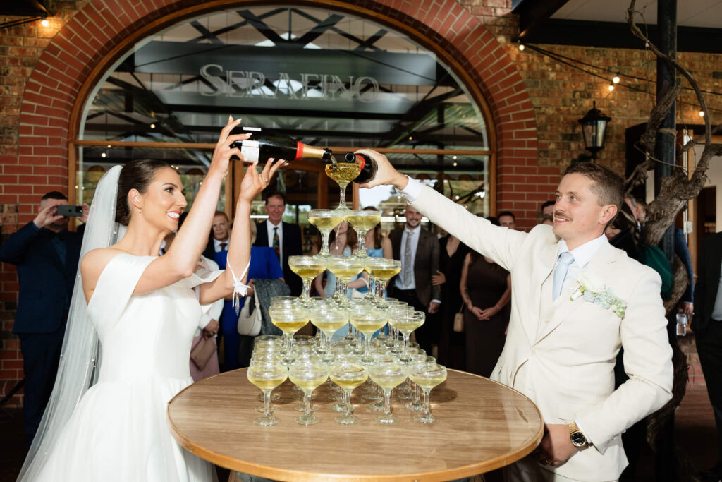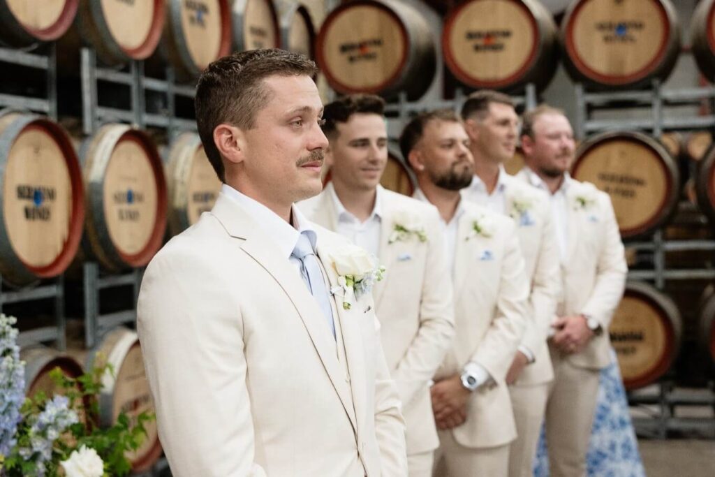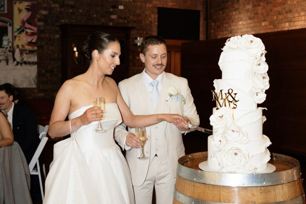 Claudia and Dan celebrated their wedding at Serafino Wines with a day full of personal touches and meaning. The morning began with a series of first looks — Claudia shared a special moment with her father, followed by her bridesmaids, and then Dan. The couple also exchanged letters and gifts before the ceremony, setting a heartfelt tone. Reggie, their dog, made his own entrance down the aisle after the bride, much to everyone’s delight.