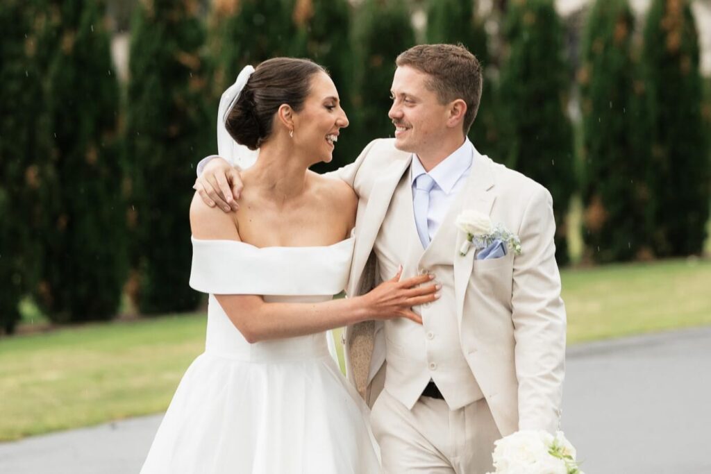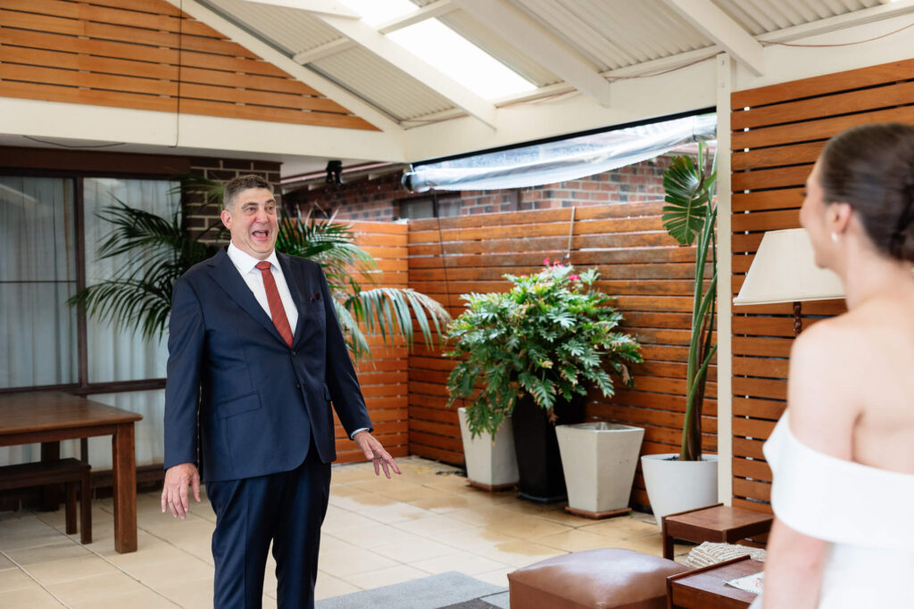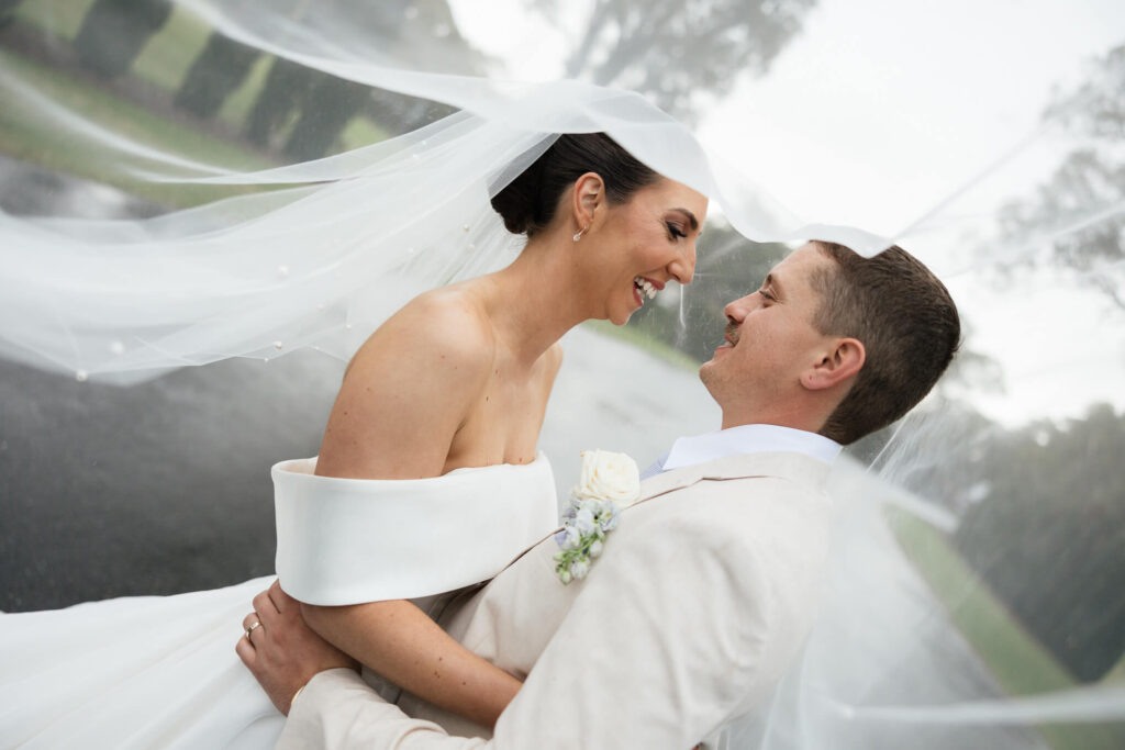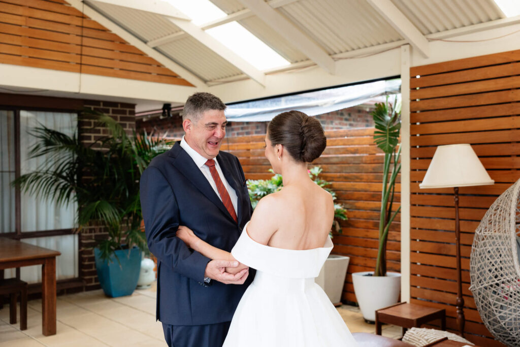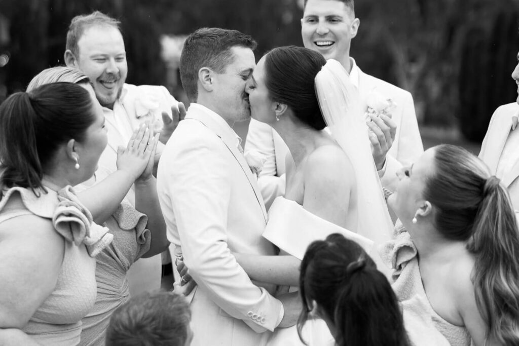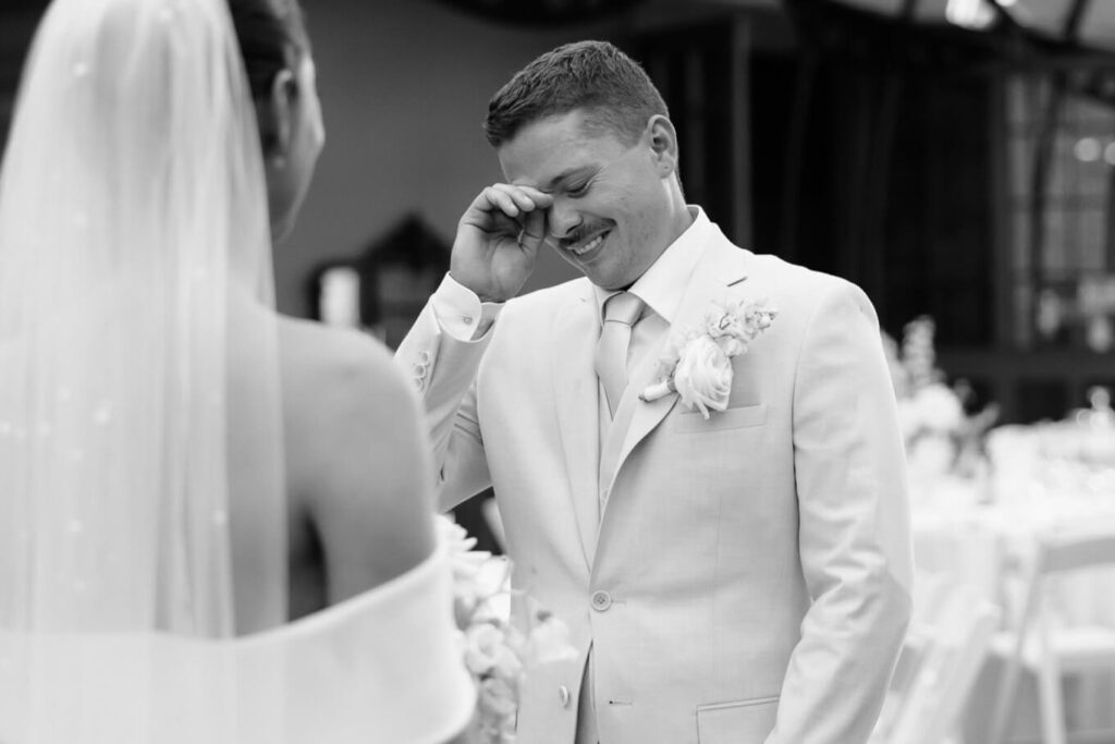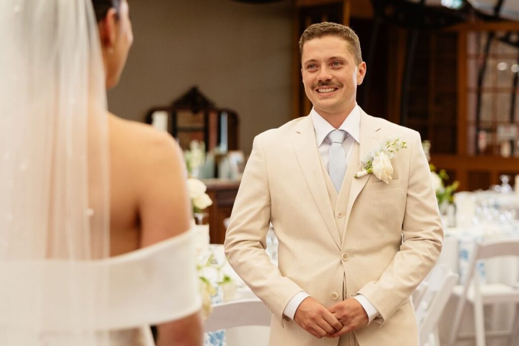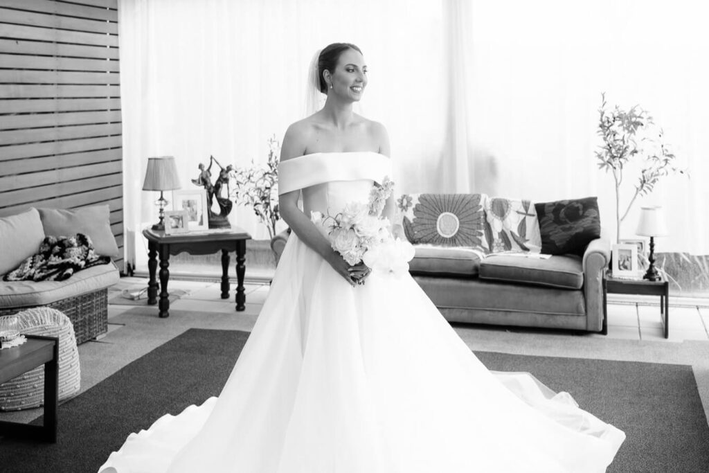 Claudia and Dan celebrated their wedding at Serafino Wines with a day full of personal touches and meaning. The morning began with a series of first looks — Claudia shared a special moment with her father, followed by her bridesmaids, and then Dan. The couple also exchanged letters and gifts before the ceremony, setting a heartfelt tone. Reggie, their dog, made his own entrance down the aisle after the bride, much to everyone’s delight.