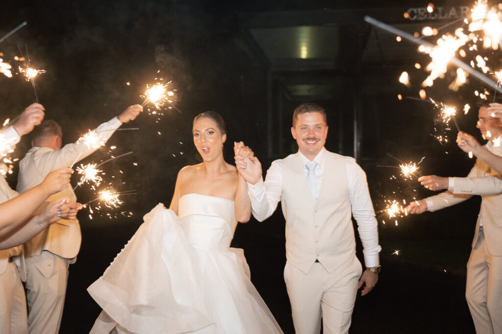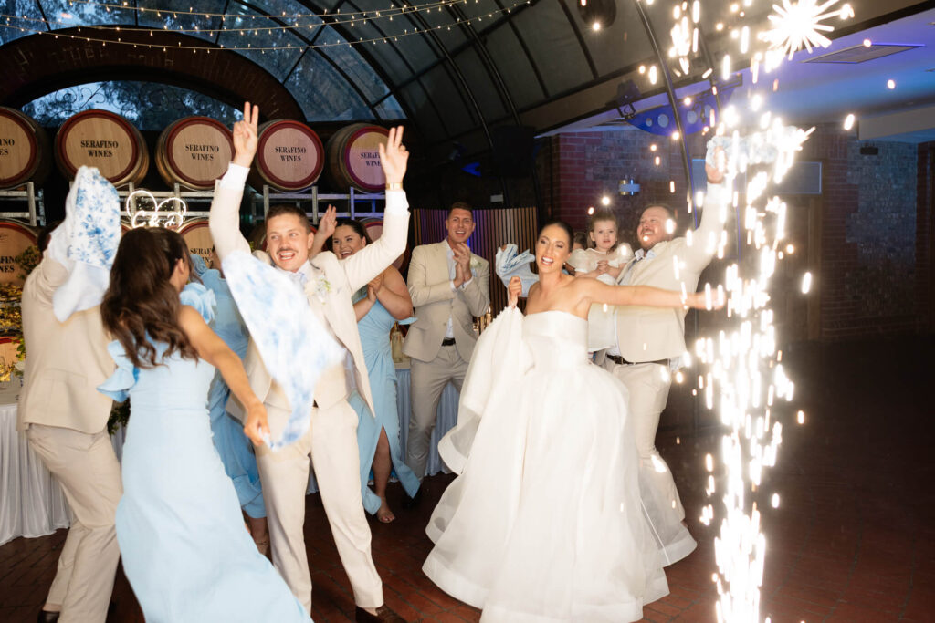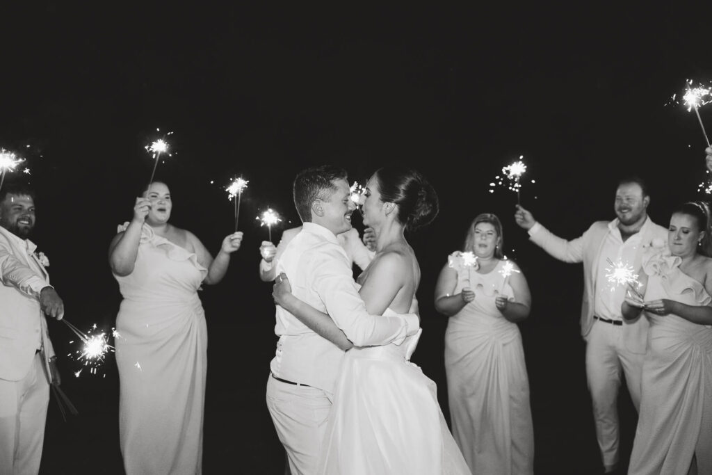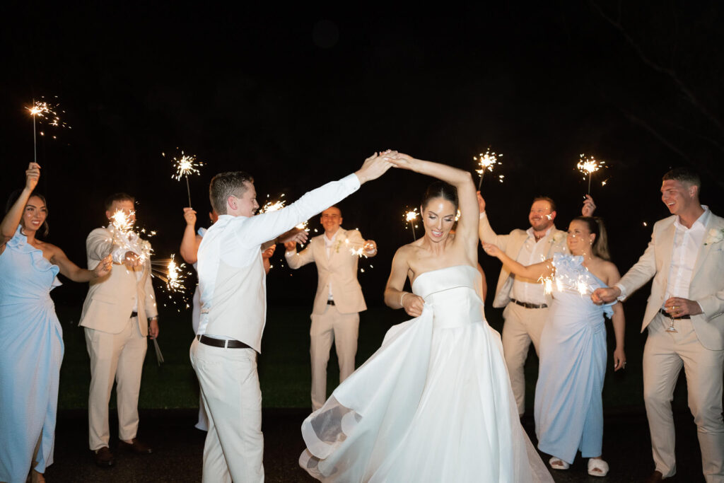 The night finished with a sparkler exit alongside their wedding party, as the bride and groom danced while sparklers lit up around them and created a tunnel for them to walk through. It was a day shared with family and friends from start to finish, and one they will always remember.