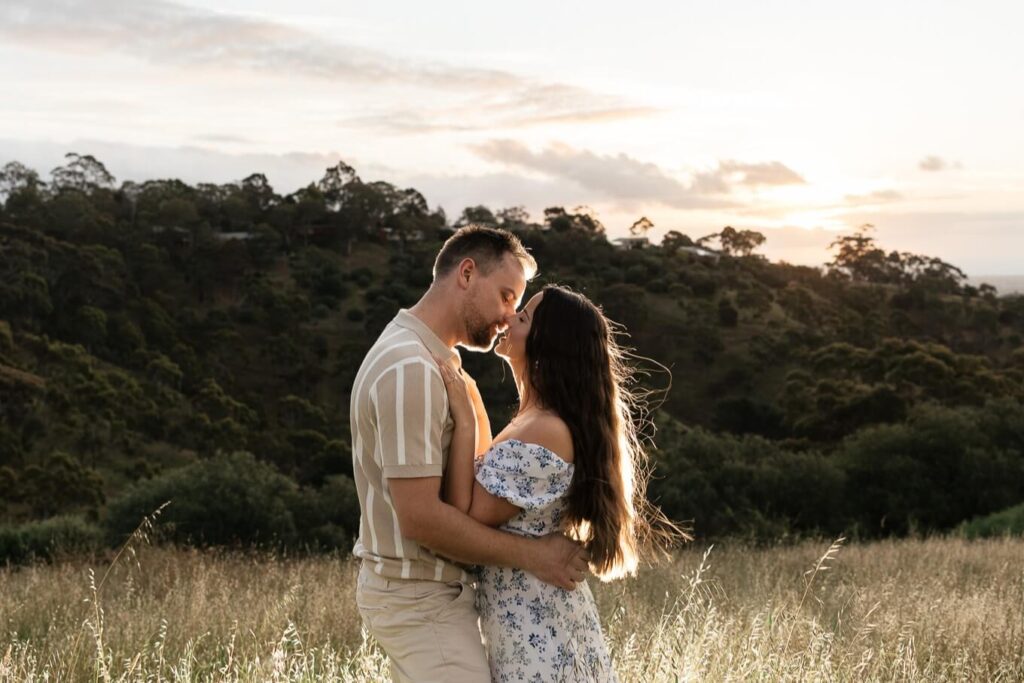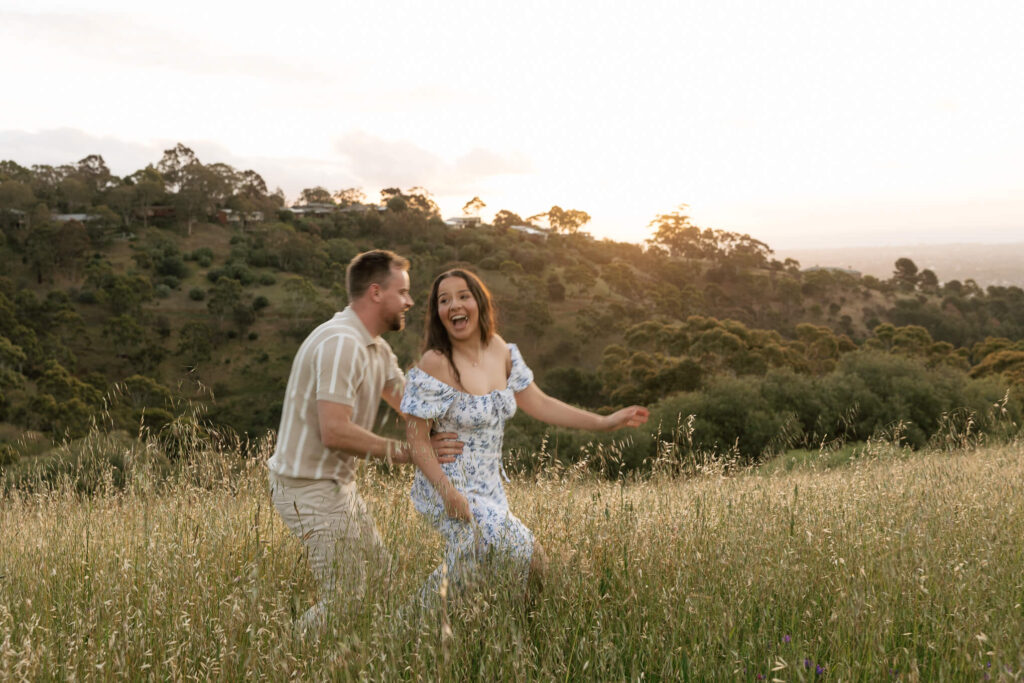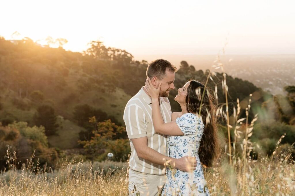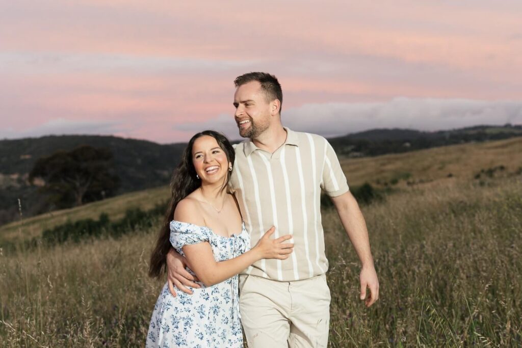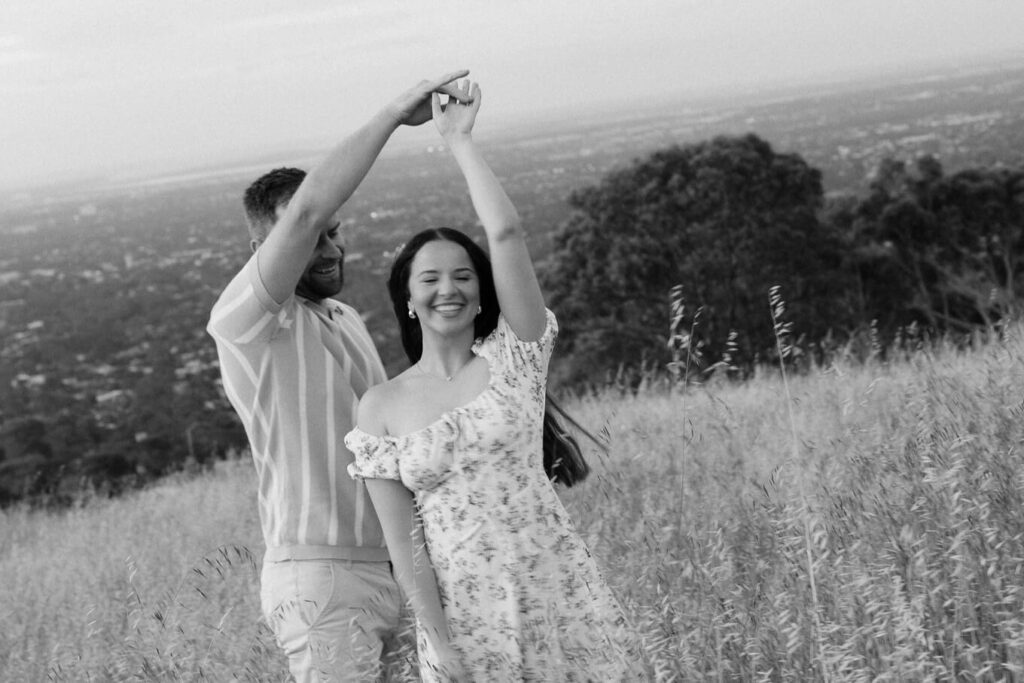 Dani and Max’s engagement session at Mt Osmond Lookout captured a joyful, carefree afternoon. Golden sunlight filtered through the landscape before giving way to a soft pinkish sky, providing a beautiful backdrop as the couple laughed, danced, and shared sweet moments together. Their connection and happiness shone through in every frame — a perfect way to celebrate this special chapter of their story.