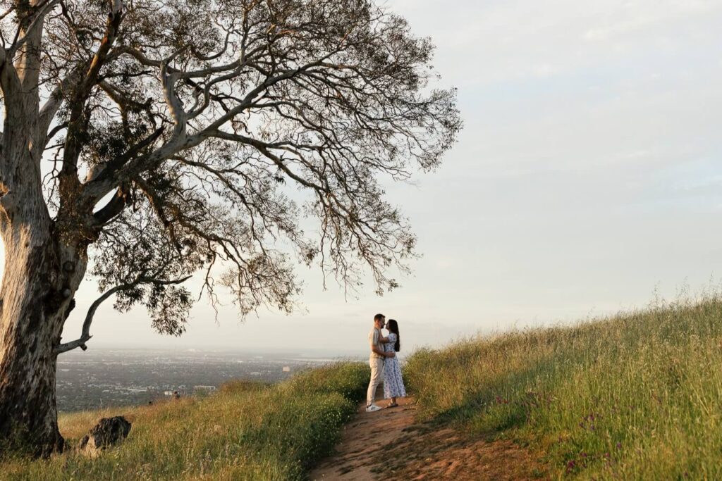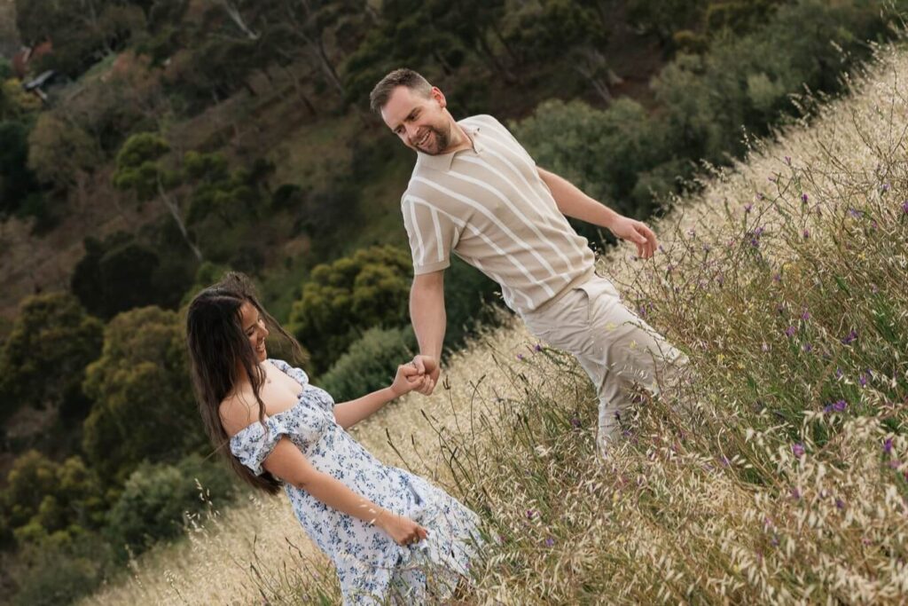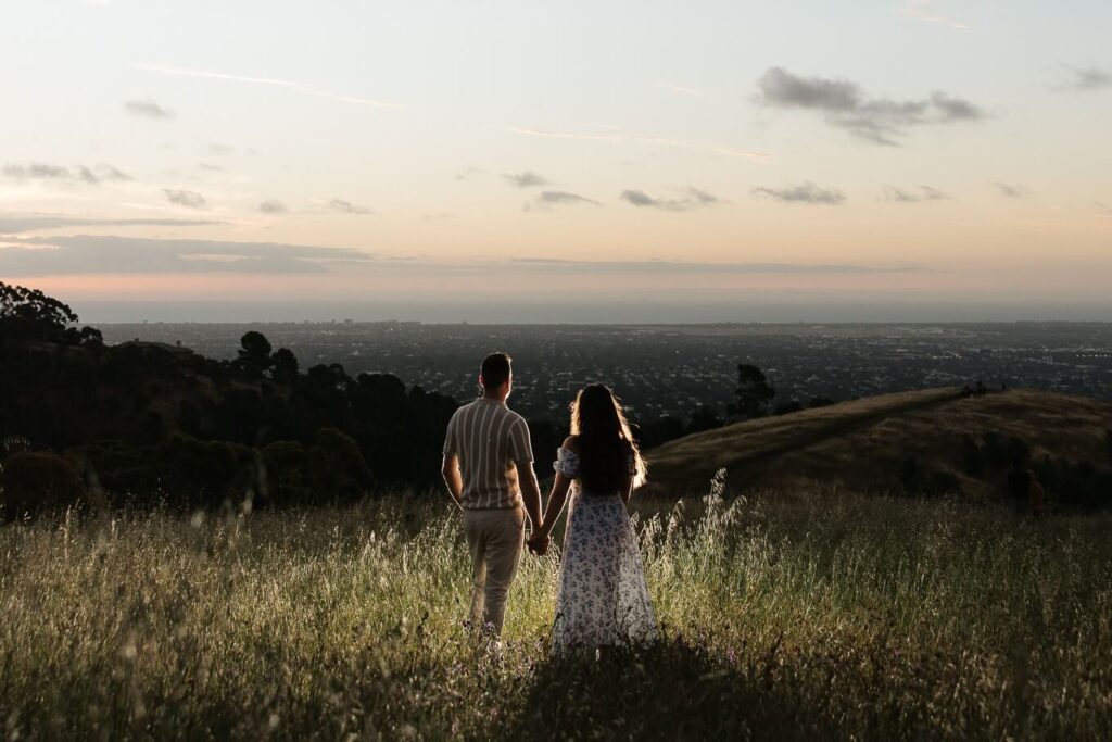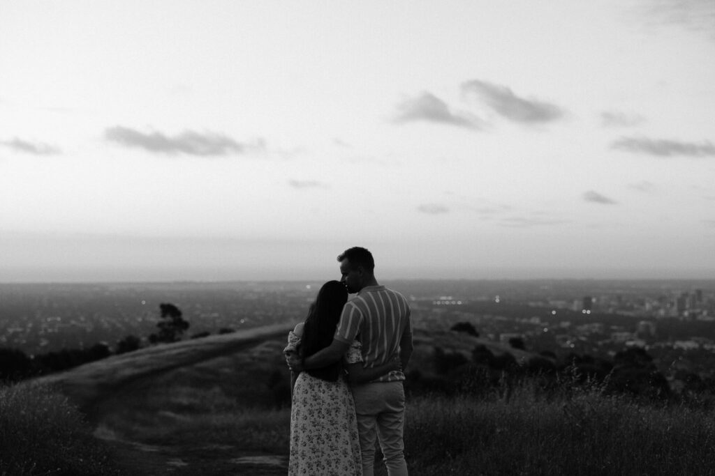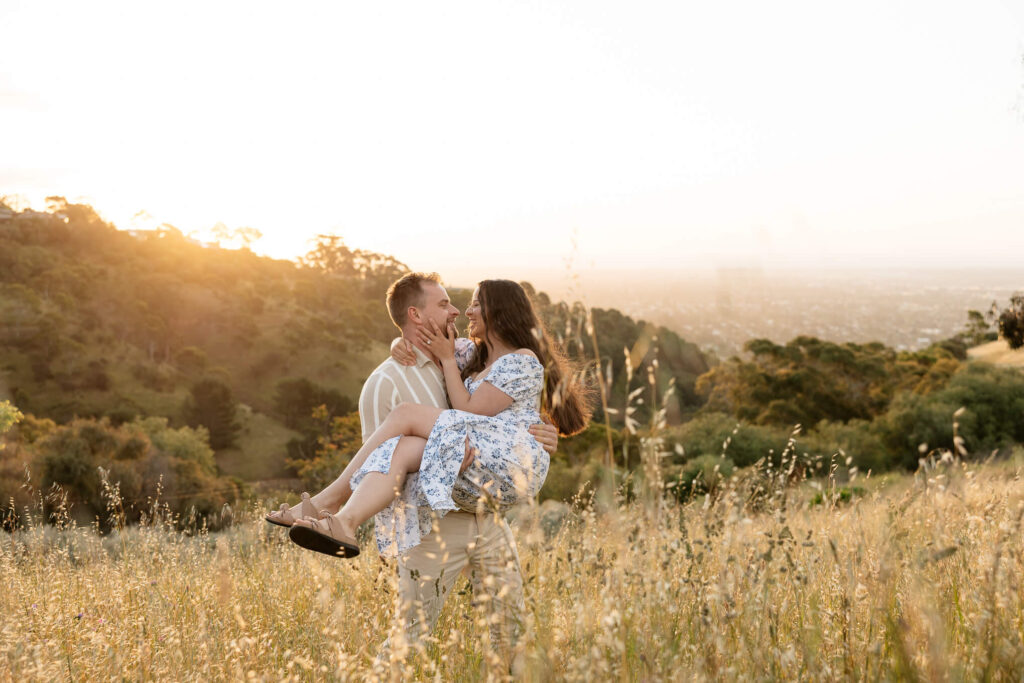 Dani and Max’s engagement session at Mt Osmond Lookout captured a joyful, carefree afternoon. Golden sunlight filtered through the landscape before giving way to a soft pinkish sky, providing a beautiful backdrop as the couple laughed, danced, and shared sweet moments together. Their connection and happiness shone through in every frame — a perfect way to celebrate this special chapter of their story.