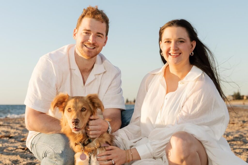 Mel and Mitch’s engagement session at Seacliff Beach captured a relaxed and heartfelt sunset by the sea. With golden colours across the sky and the sound of the waves nearby, they wandered along the shoreline with their dog, sharing sweet and genuine moments together. Their easy laughter and natural connection made every frame feel effortless, creating a warm and joyful atmosphere. It was a beautiful way to celebrate this special chapter in their journey together.