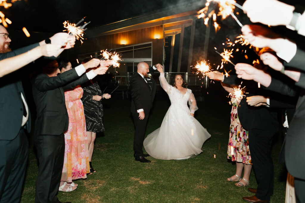 To end the night, family and friends formed a sparkling arch, lighting the way for the newlyweds to make their exit. It was a picture-perfect finish to a day full of love, laughter, and unforgettable memories.