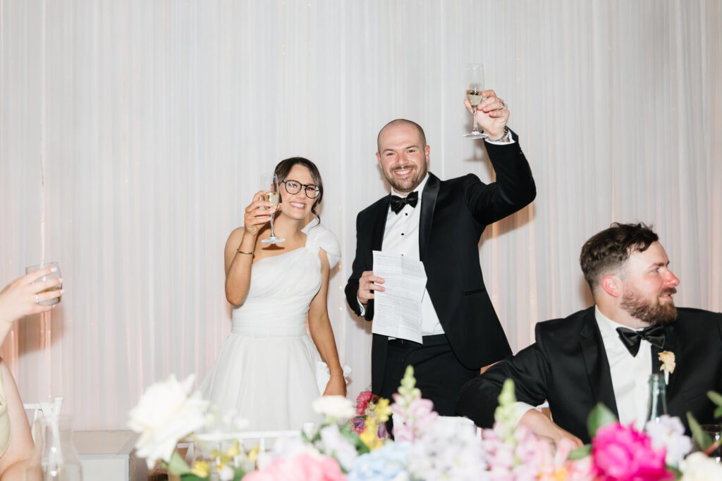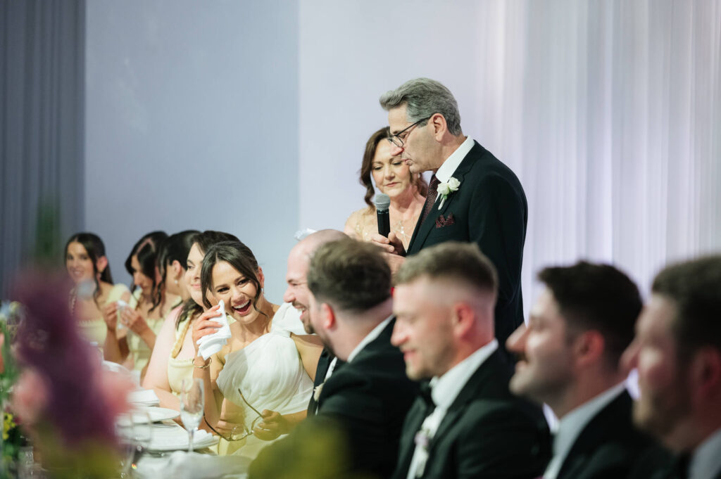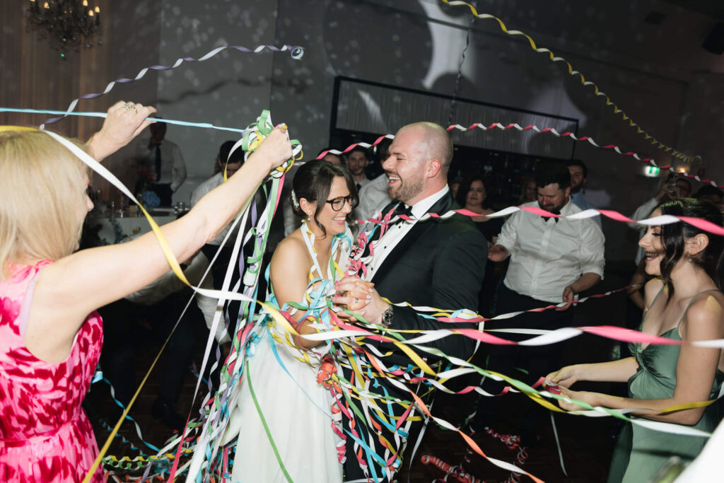 The reception at JDF Receptions continued the celebration with meaningful moments. Natalie shared a father-daughter dance, Stefan had a mother-son dance, and the couple shared their first dance together. Guests joined in on the fun, showering the newlyweds with streamers, before Natalie changed into a shorter dress to enjoy the rest of the evening.