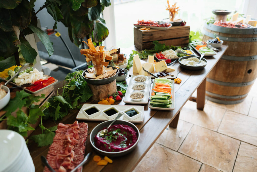 After the ceremony, guests moved into cocktail hour, where a grazing table offered a delicious spread to enjoy while mingling. Steph and Lachie also took time for portraits and wedding party photos, making the most of the scenic surroundings and the warm atmosphere of the day.