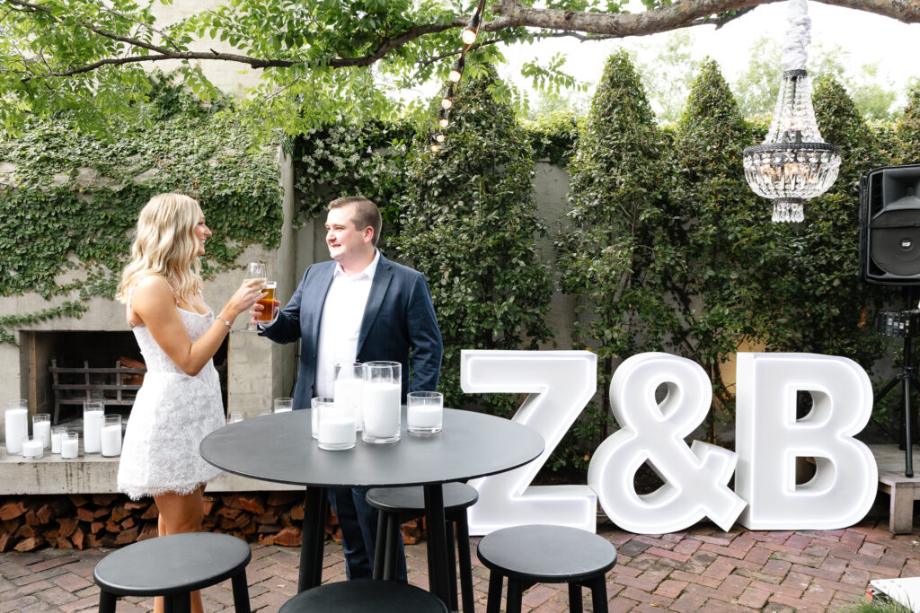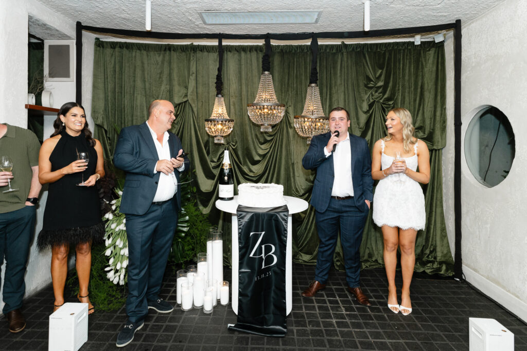 Zenya and Brodie’s engagement party at Arkhe Restaurant was filled with warmth and the best kind of celebration. The space was beautifully set up, creating an inviting atmosphere for their closest friends and family to gather. From the moment guests arrived, the room buzzed with laughter, conversations, and genuine excitement for the couple.